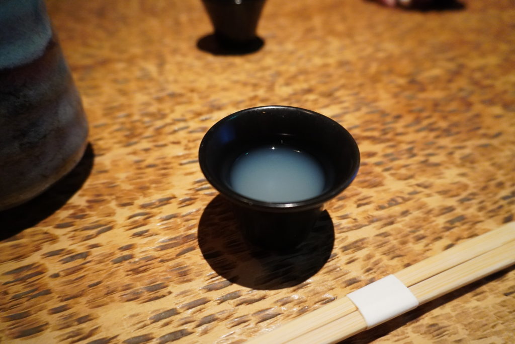 最初にでてきたのは、出汁。貝の出汁でお口の中のコンディションを整えます。ホームステイのモリーは異国の文化に興味津々です。