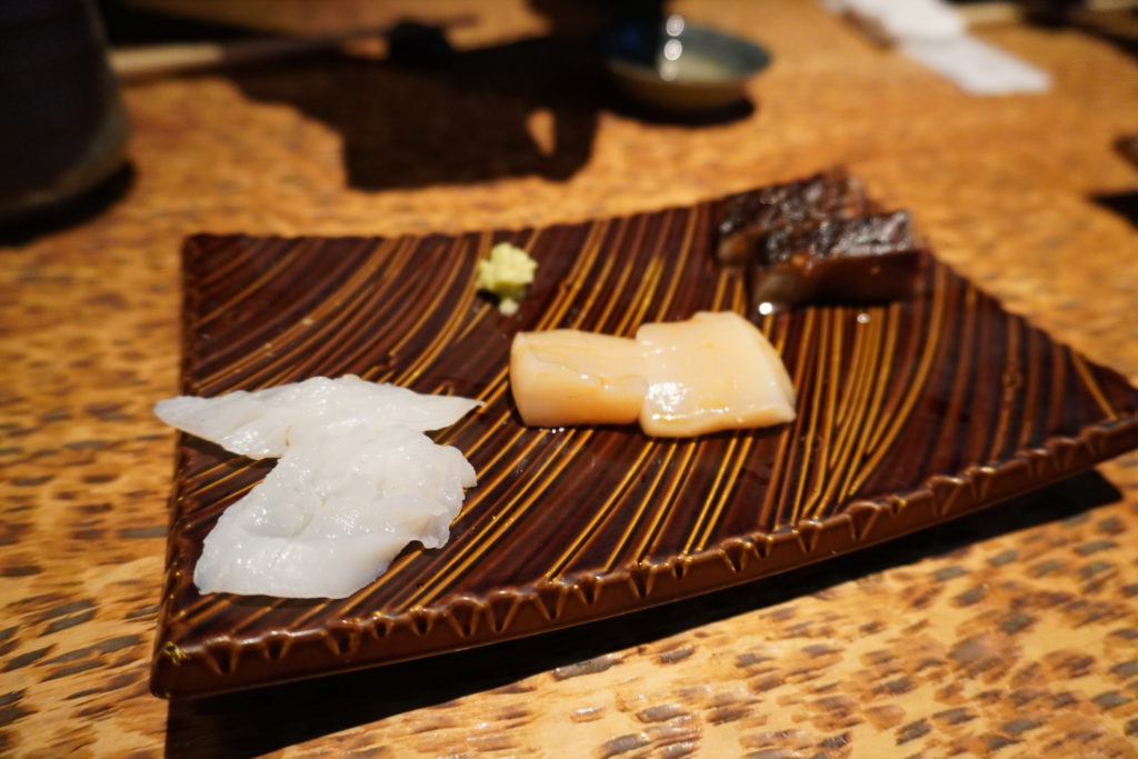 はい、お刺身。お寿司のあいまあいまにこういうものが出てくるの、リズムがいいです。