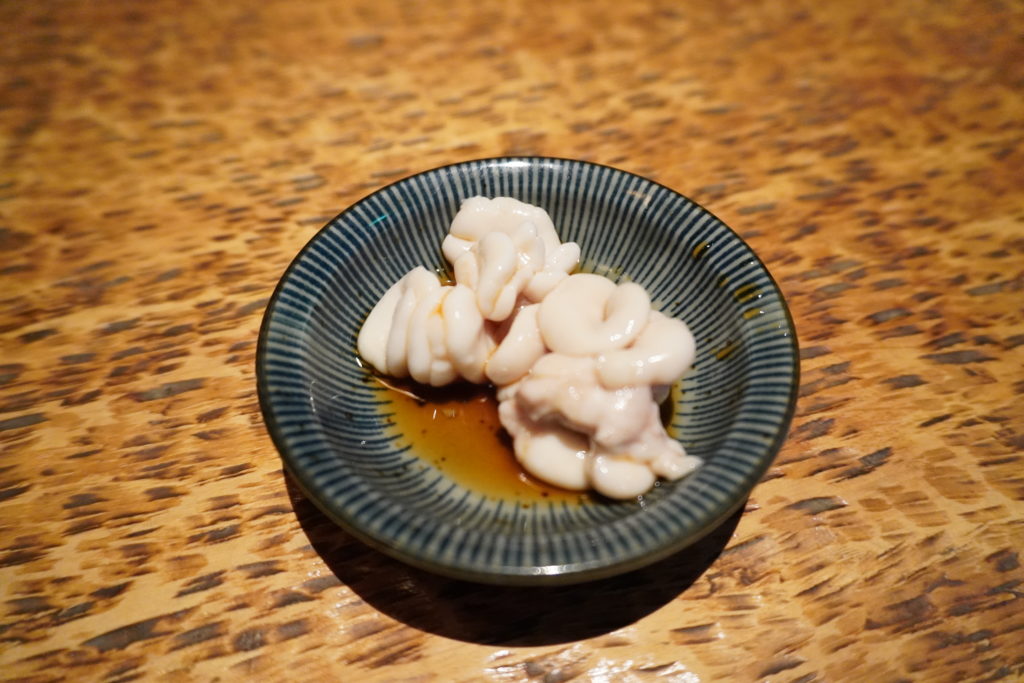 白子ポン酢。モリーは怖がってましたが、食べれました。外国人にはなかなか難しい風貌だと思われます。