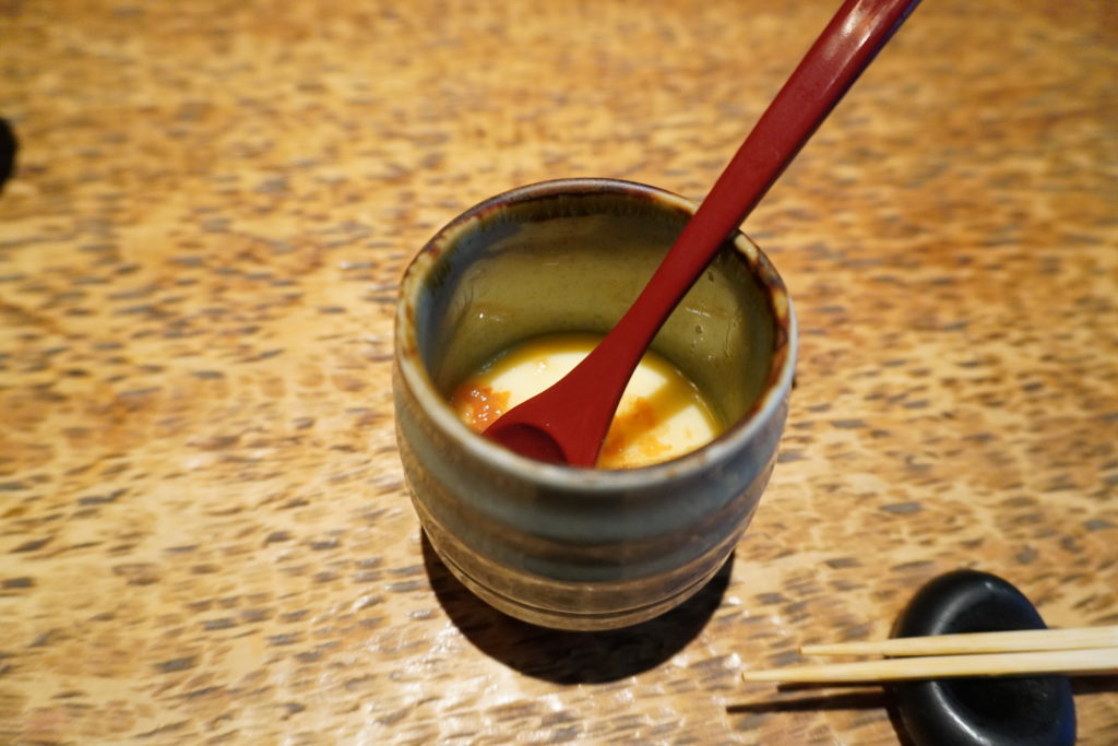 この茶碗蒸し、梅肉がちらしてあるんです。甘い茶碗蒸しと梅の酸味、絶妙です。