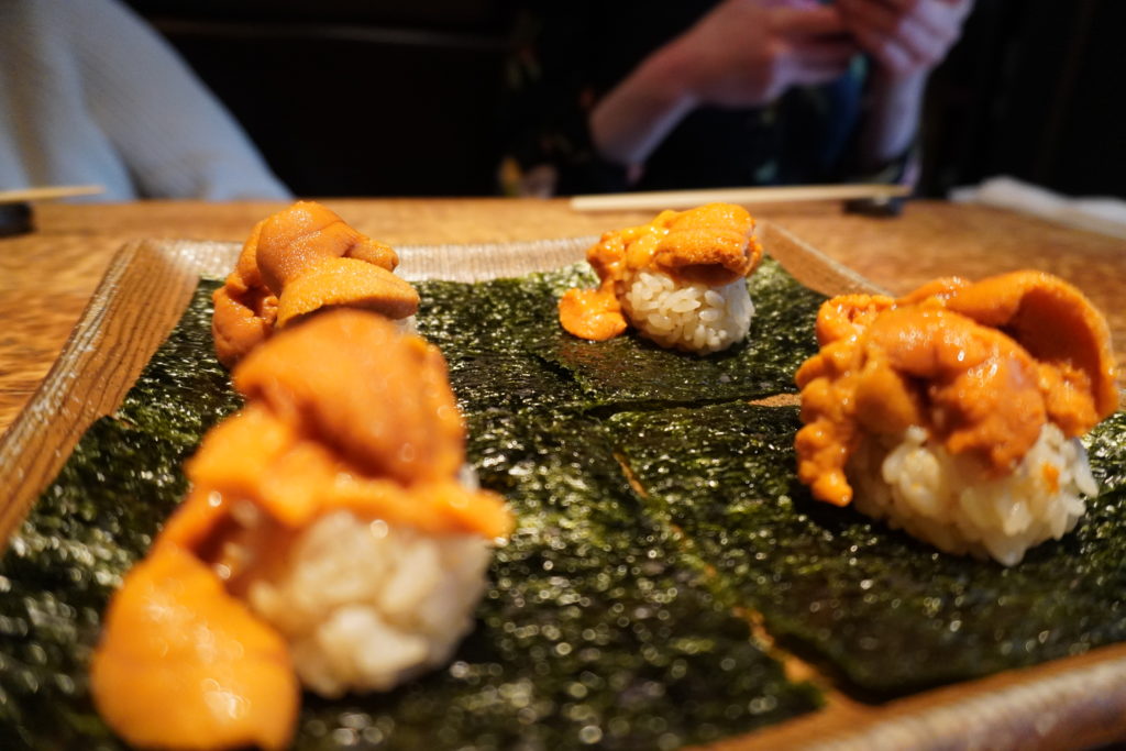 だけど、軍艦ではなくて、巻いて食べるウニ。のりの風味と合わさってめちゃくちゃおいしい。なんと娘はウニが食べれないので、3人で戦利品を山分けしました。