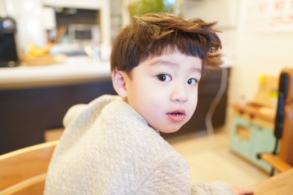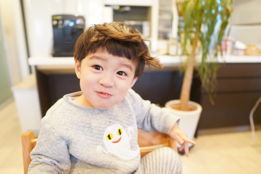 ある日の芸術的な寝癖と、「2歳」の指ができるようになったという記録。