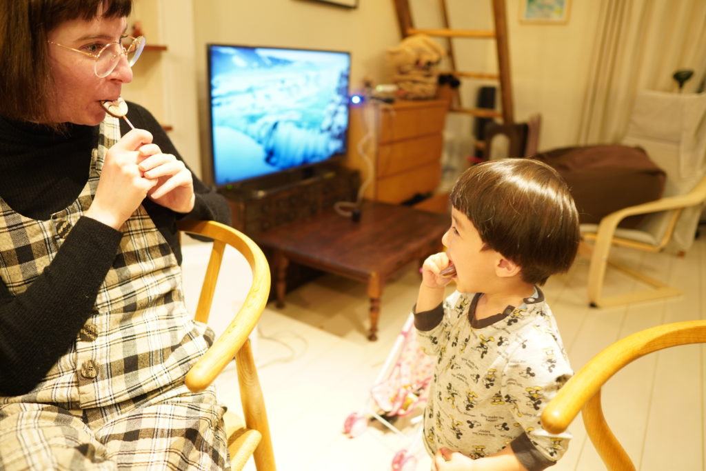 いつも日本語と英語の中間で会話してる二人。仲良し。