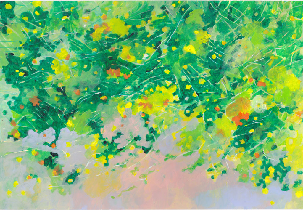 ピンク、青、黄色を一つの絵で使うというのが自分の発想には絶対にありえないので斬新でした。