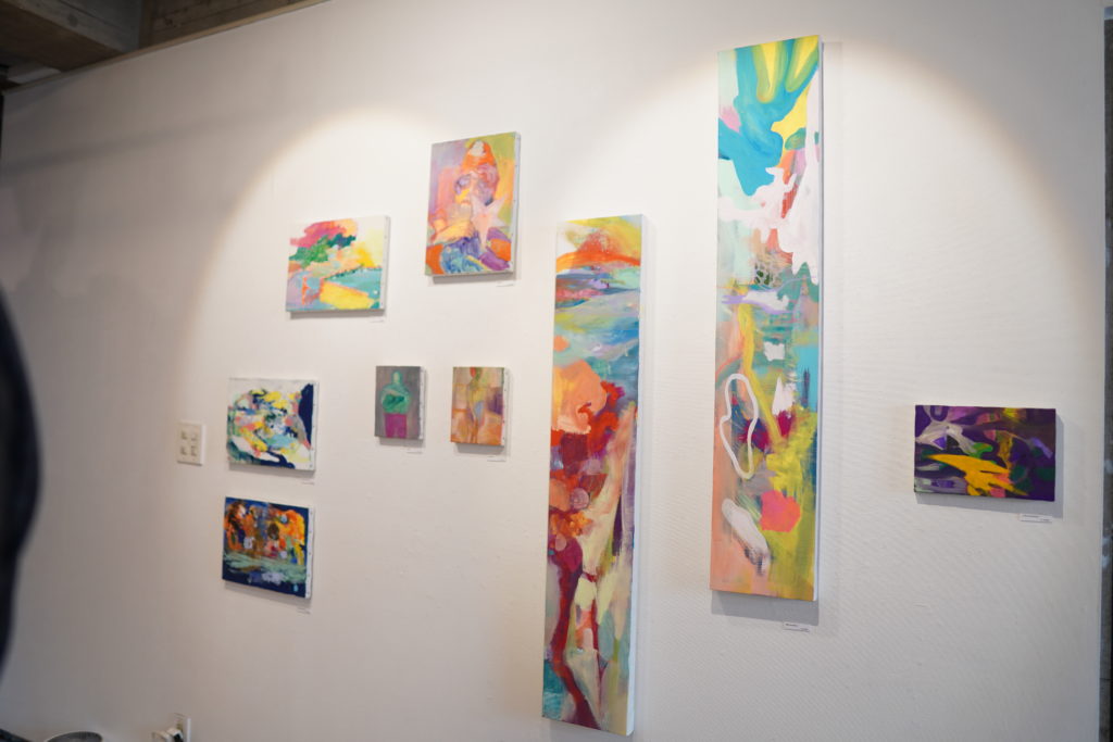 目を引く赤いお花の絵は、はじめて自画像を取り入れたんだって。これからもどんどん自画像描いていくのかな。