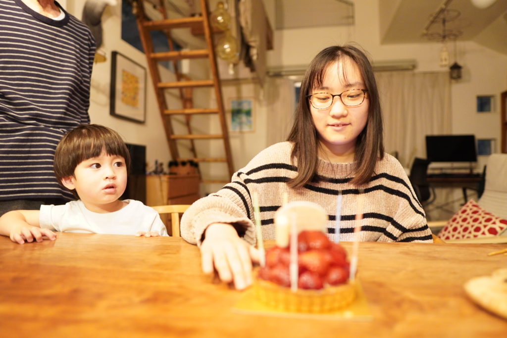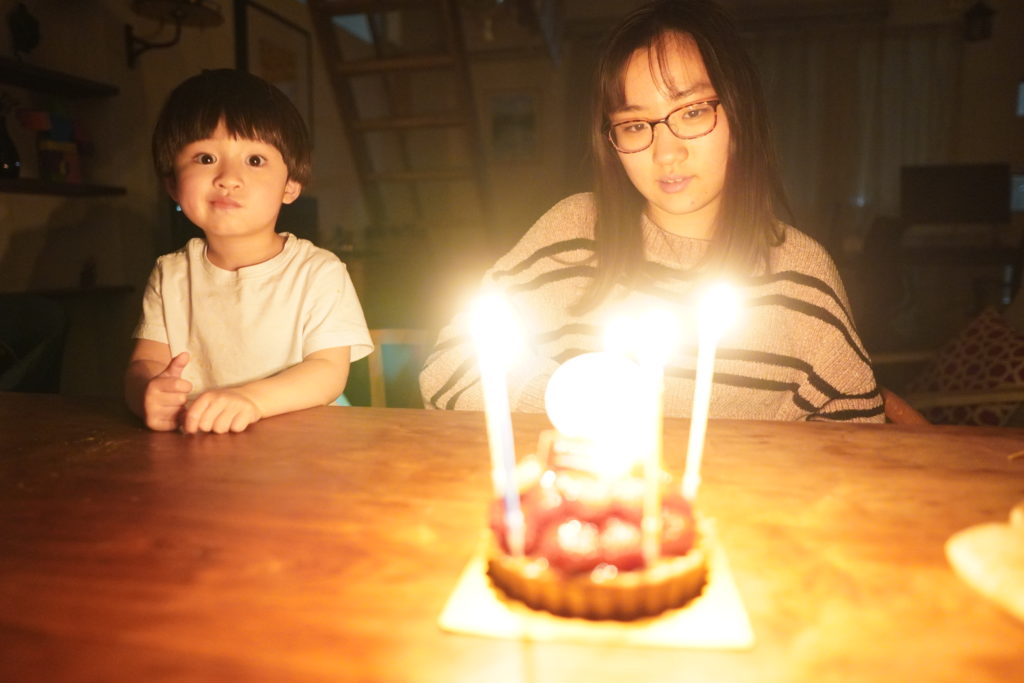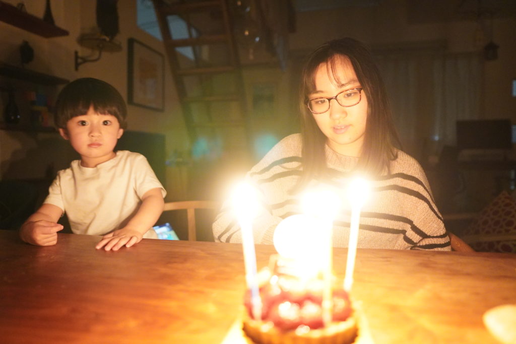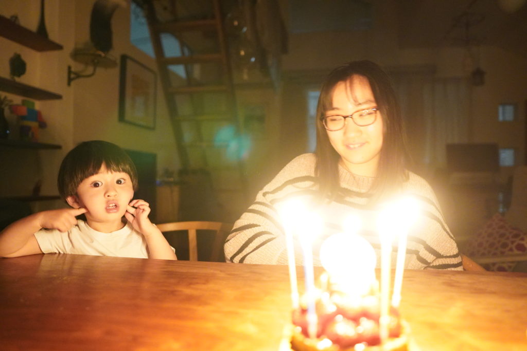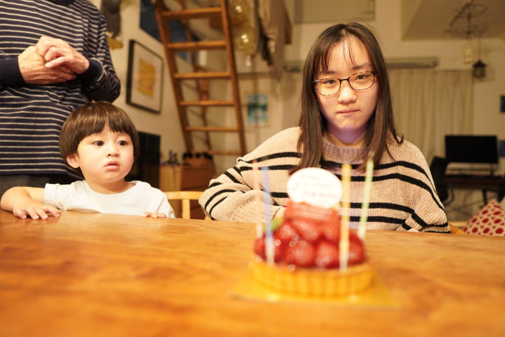 おねえちゃんの誕生日でした。弟は興味しんしん。