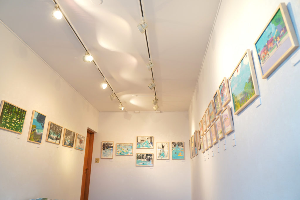 私が個展をしているギャラリーハウスマヤの会場には小さなテーブルがあるのでそこでこうやってブログを描いたりもできるし、お客さんがいない時間は自分の絵と対峙するもよし、仕事をするもよし、でそこにいる空間のを自由に楽しく過ごすことができます。展示期間中という少しの間ですが、自分の絵を販売する実店舗を持ってそこでも仕事ができる感覚を味わえます。