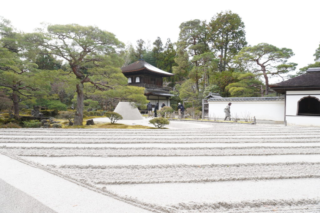 銀沙灘と向月台と銀閣寺。これらを踏まえて月をみるのだとか。見てみたいなぁ。