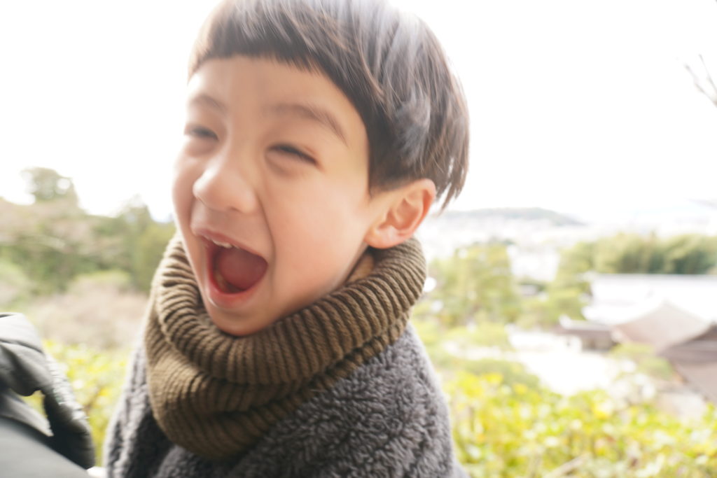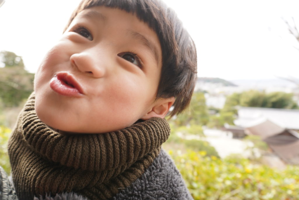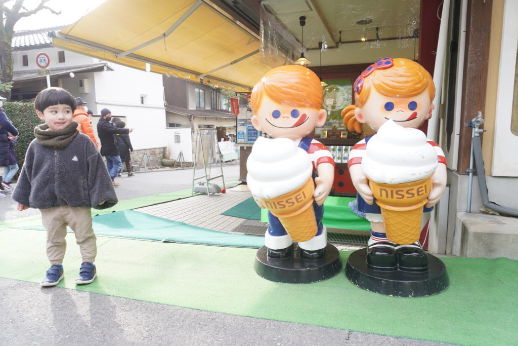 帰り道にかわいいソフトクリームを見つけたので、同じように「舌だしてみて」とリクエスト、とそれに答える息子。