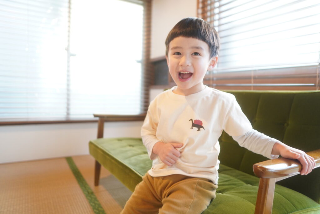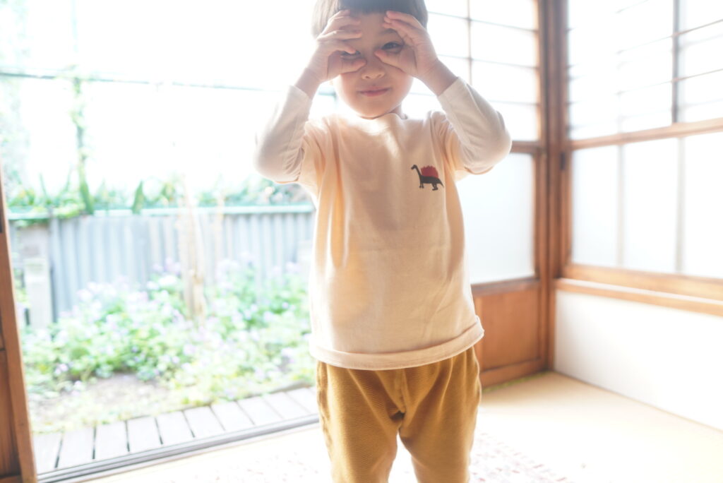 この写真はスピノサウルスのワンポイントTシャツ。恐竜オタクの息子はシルエットでもどの恐竜か見分けてしまうのでとても喜んでいます。