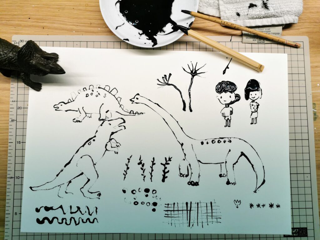 本日ははじめて、竹ペンという素材を使い、いろいろ試し描きしていました。