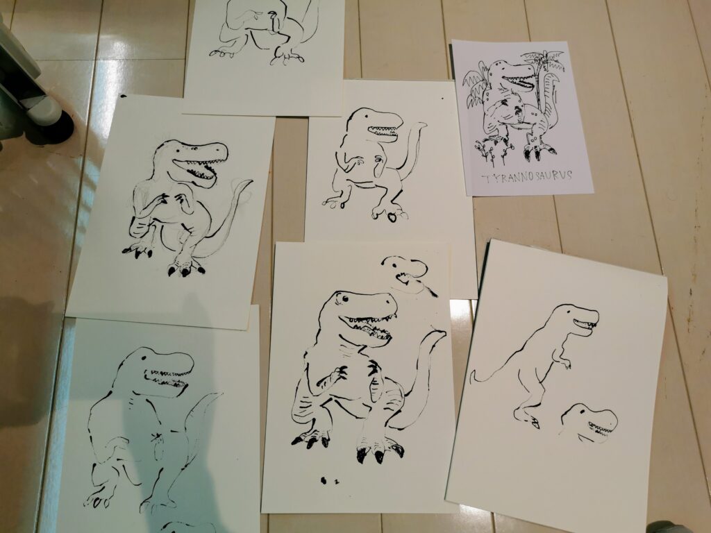 それでたくさんティラノサウルスの試し書き、なかなかいい形がとれません。