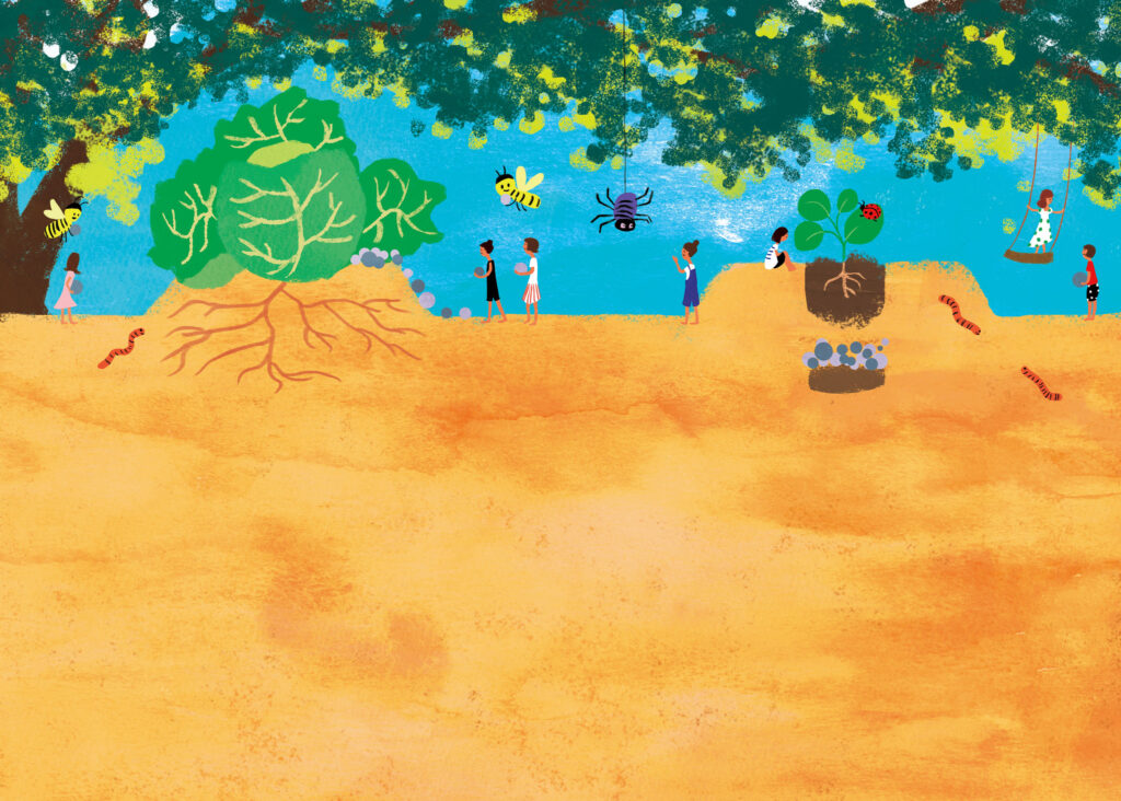 穴がいっぱいになったら、土をかけて発酵・熟成を待ちます。2~3か月で完全に生ごみは土に還ります。半年経てば、この土は野菜や花に使えます。
