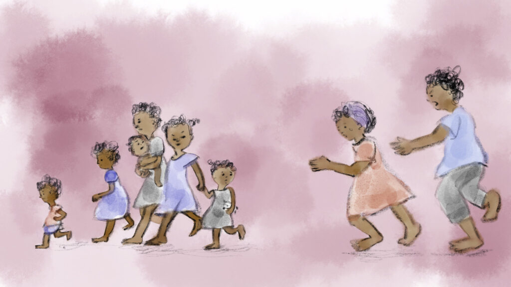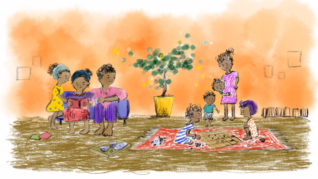 エヴァちゃん親子がまだ自分の国で幸せに暮らしていた頃のイラストレーション。