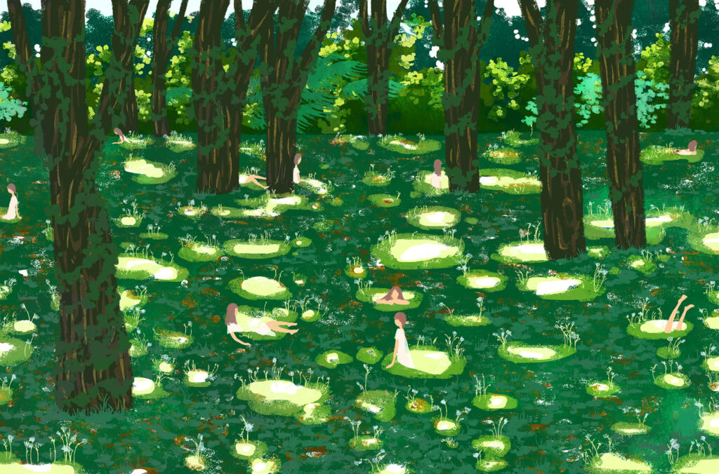 写真や絵でわかりにくいのが、風でゆらゆらと動いている光の感じや時間ごとに移り変わっていく様子も好きです。