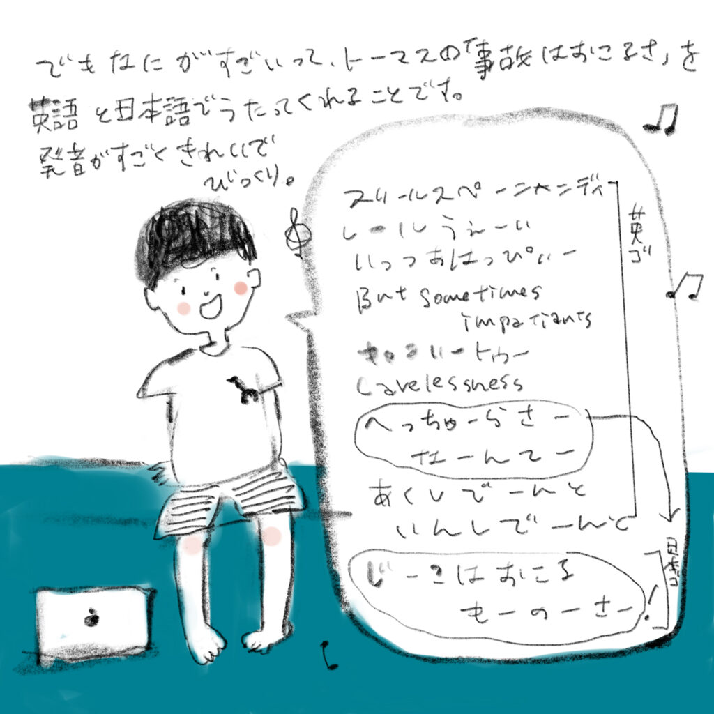 とにかく耳から入る発音だけでトーマスの英語の歌を完璧に歌っているのです。これには家族全員びっくりしました。