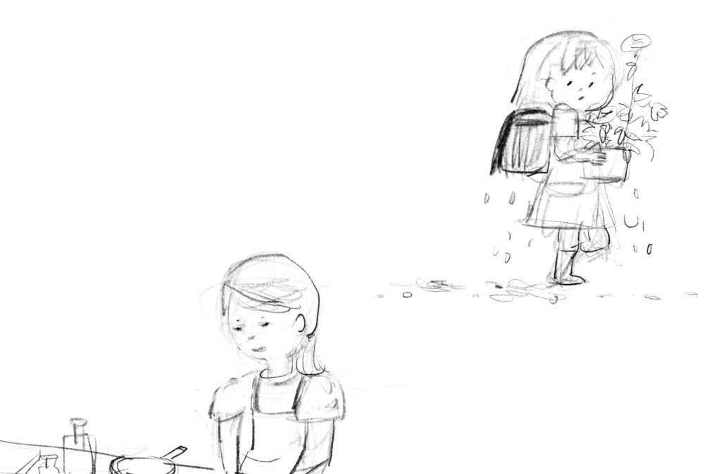 漫画は趣味で、こちらが毎日本気でがんばっている制作なのですが、来年発刊を目指している絵本も制作しています。