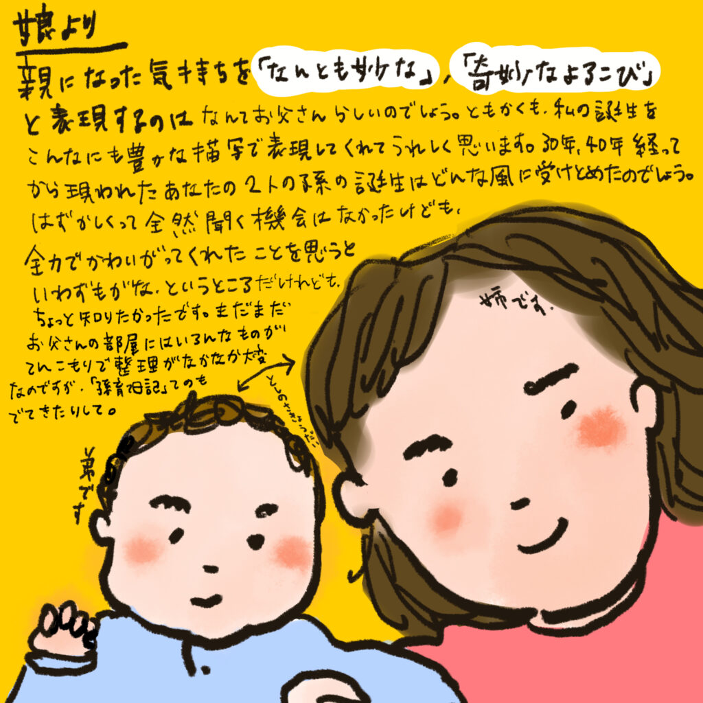 そんな中でも、なんとなくはじめてしまったのが、父の文章に絵をつけることと当時29歳だった父に返事を書くことです。