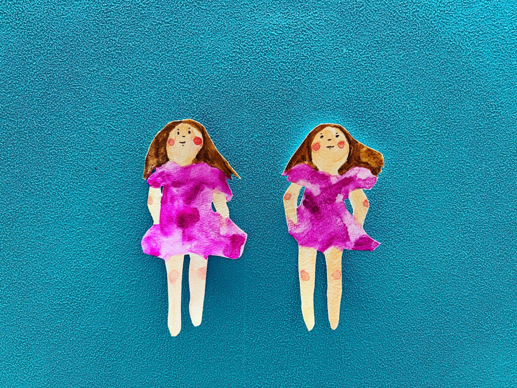 アクリル絵の具もいいのですが、水彩もきれいなので、肌や髪の毛は水彩で描いています。