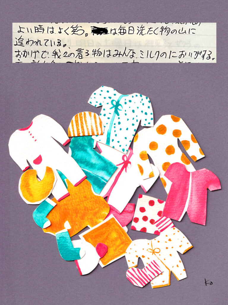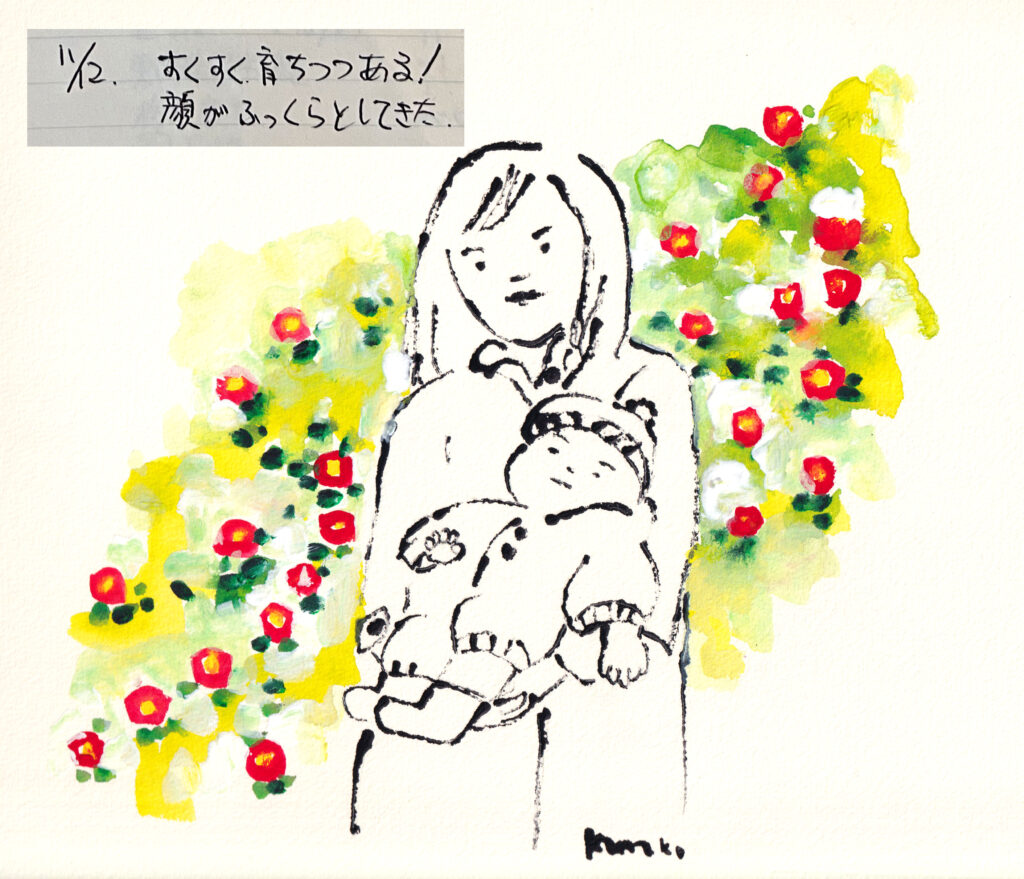育児日記に挿絵をつけるときは、今ではもう父との会話のようになっている。