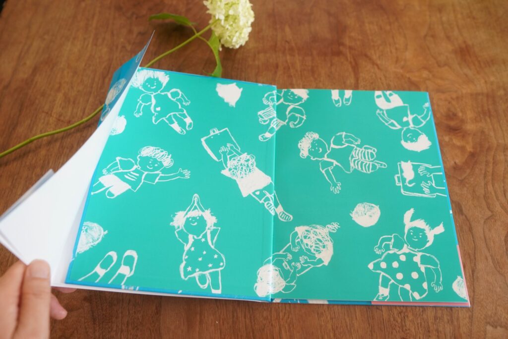 見返しはとても素敵なブルーグリーンに仕上げていただきました。こちらDICカラーです。