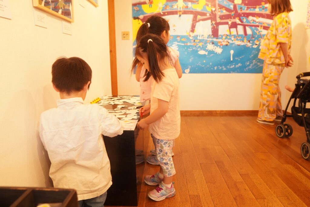それから子どもたちに貼り絵をしてもらおう!というのも後からでたアイデアだったのですが、ギャラリーに聞いても過去そんな参加型の作品展をした人はいないらしく、果たして本当に貼ってもらえるのか疑問でした。