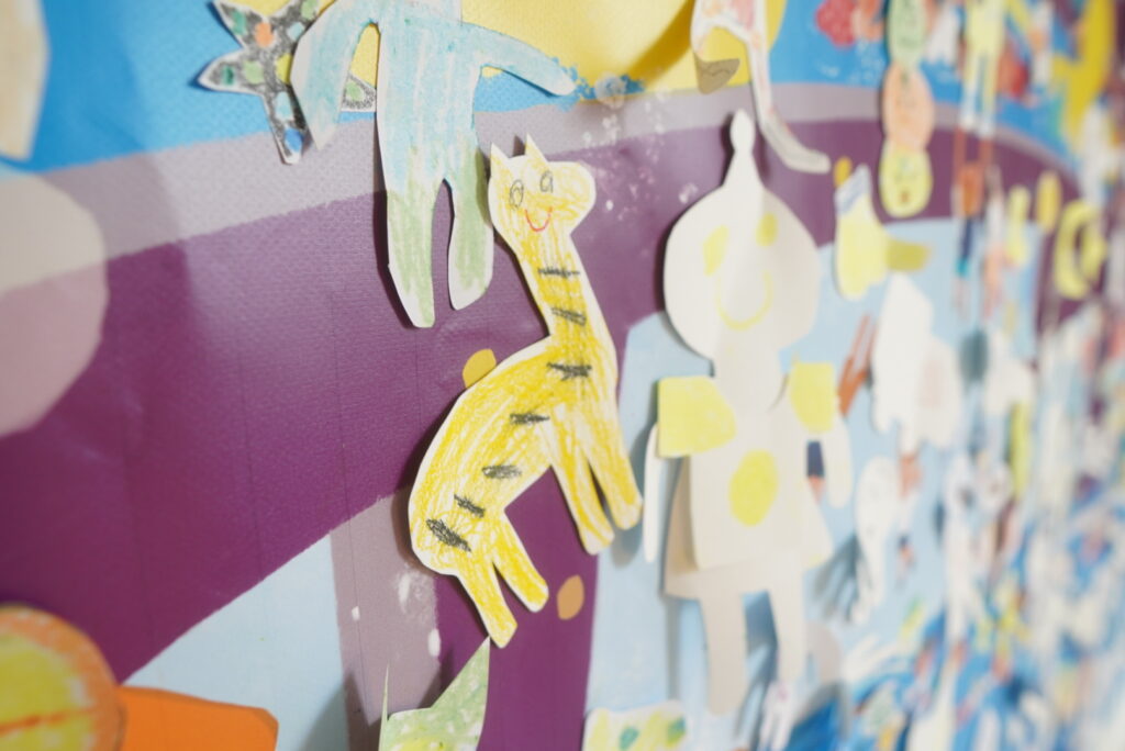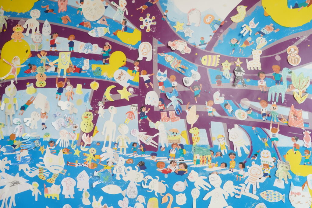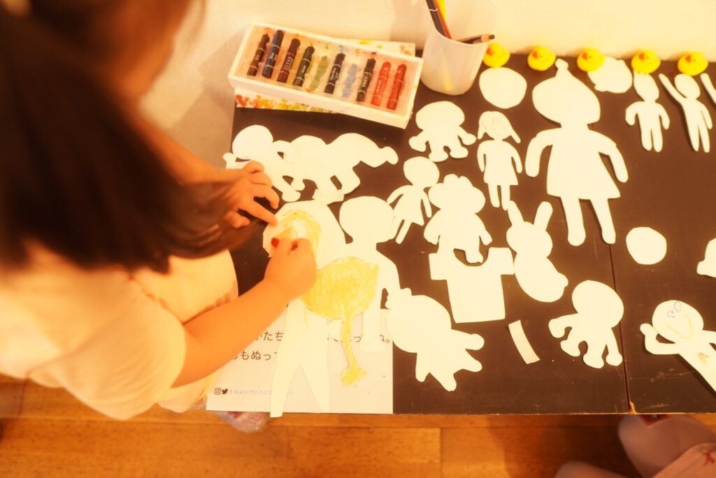 いざ展覧会がはじまってみると、大人も子供も一生懸命、切り絵に色を塗って貼り絵をしてくれました。