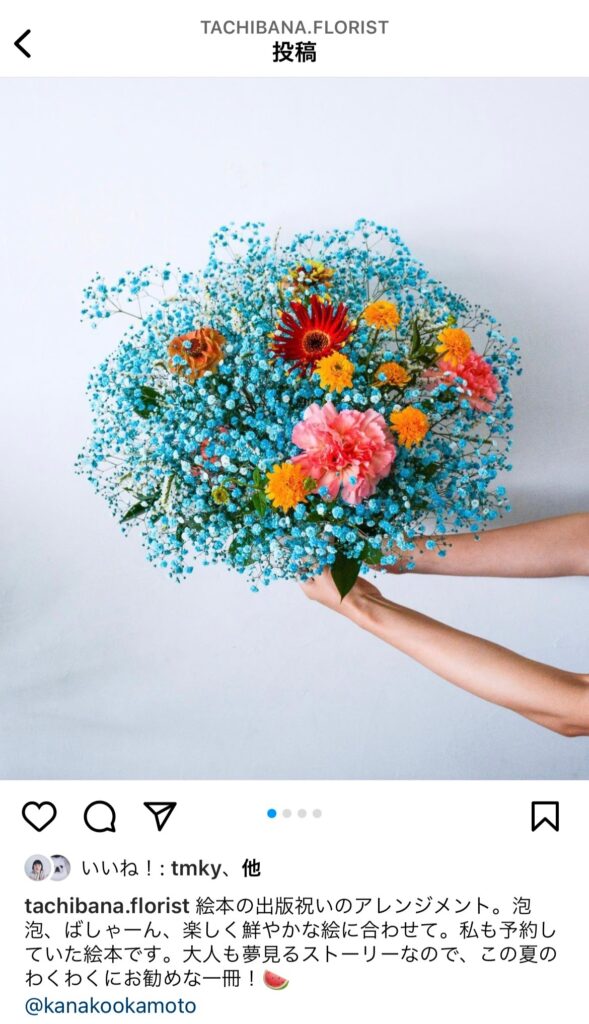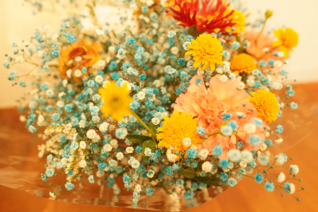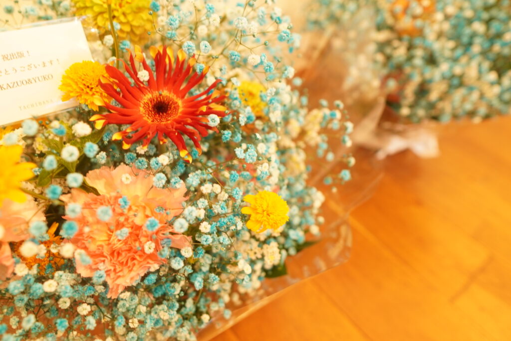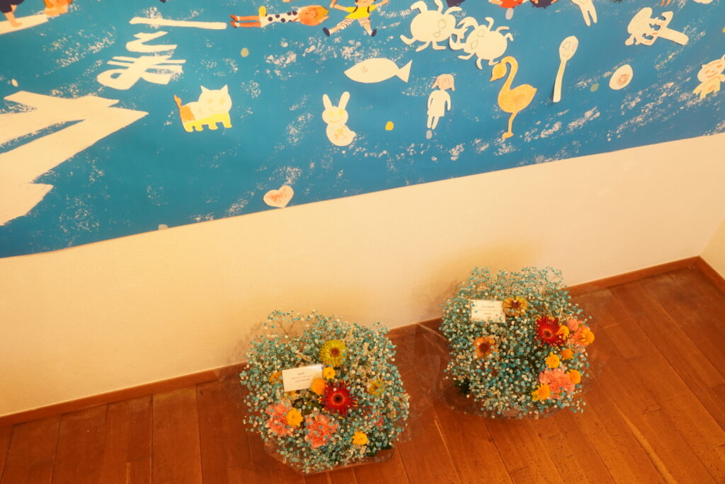 今回とってもうれしかったのが、事前に私の絵本を読んで、その世界観をイメージしたフラワーアレンジメントをしてくださったフラワーショップ橘さんのお花です。もちろんオーダーしてくれた友人にも感謝でいっぱいです。