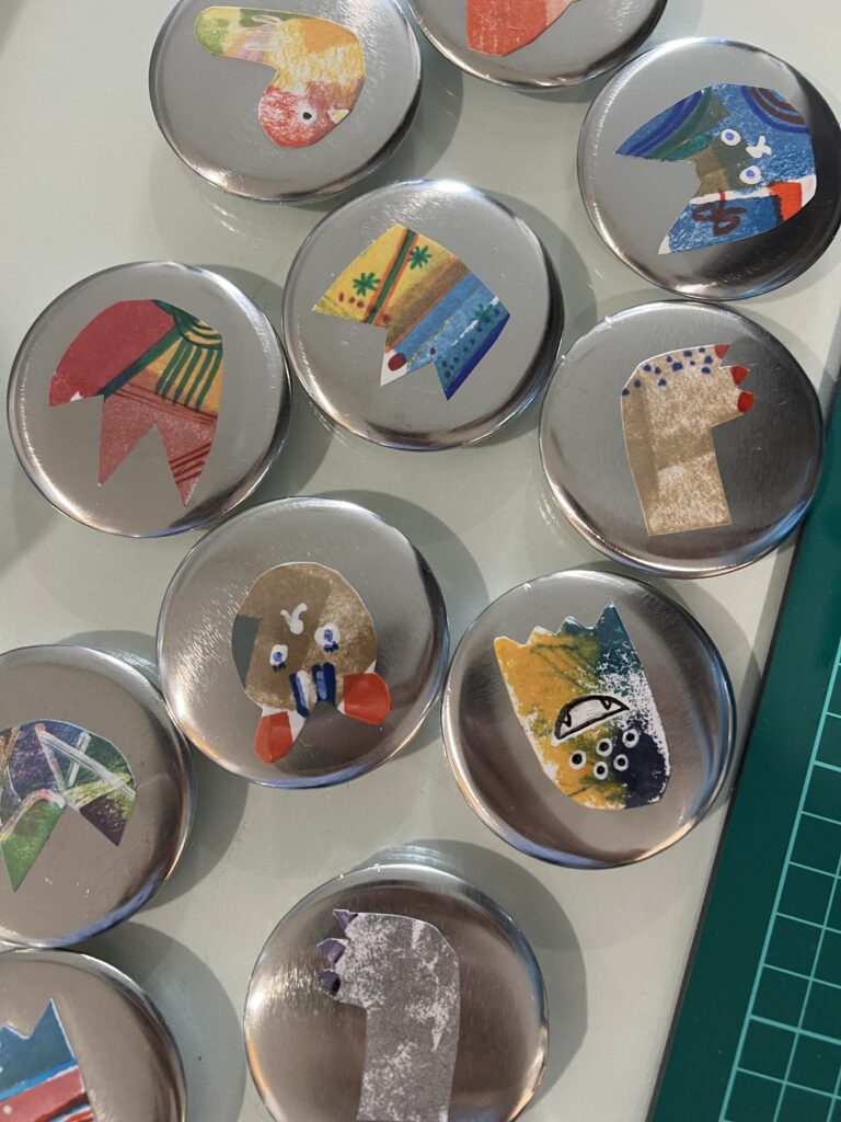 出来上がった作品は缶バッチにしてプレゼントします、かわいいでしょ。