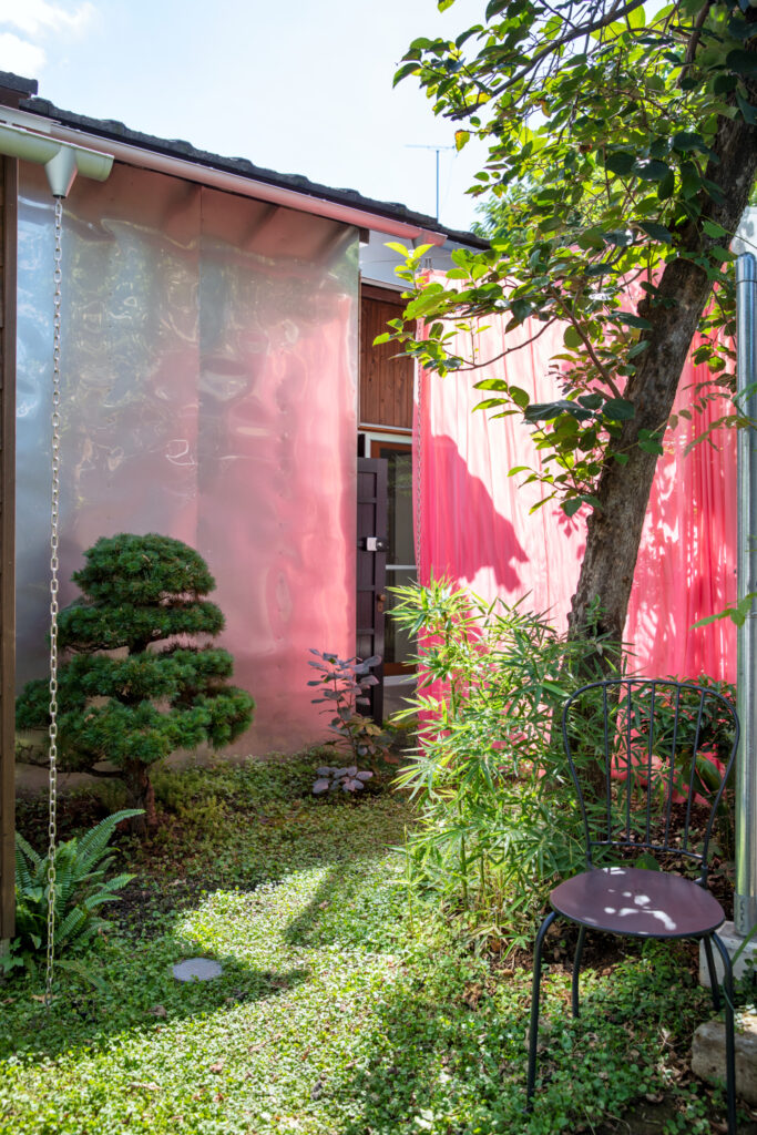 はるのやは元お茶室の古民家を山田紗子さんの手によって改築された宿泊施設です。ピンクやイエローの蛍光カーテンが優しく古びた小屋を彩り、これまでたくさんの人を迎え入れていました。