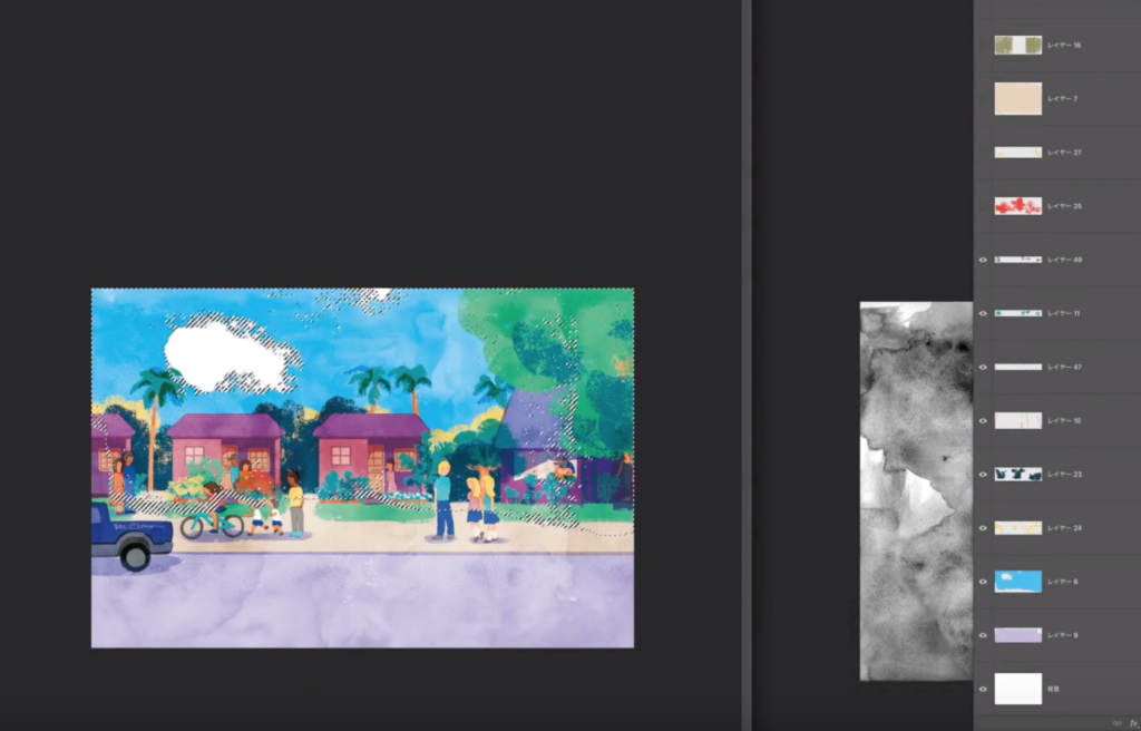 絵の仕上げに、よくイラストにテクスチャーをつけます。