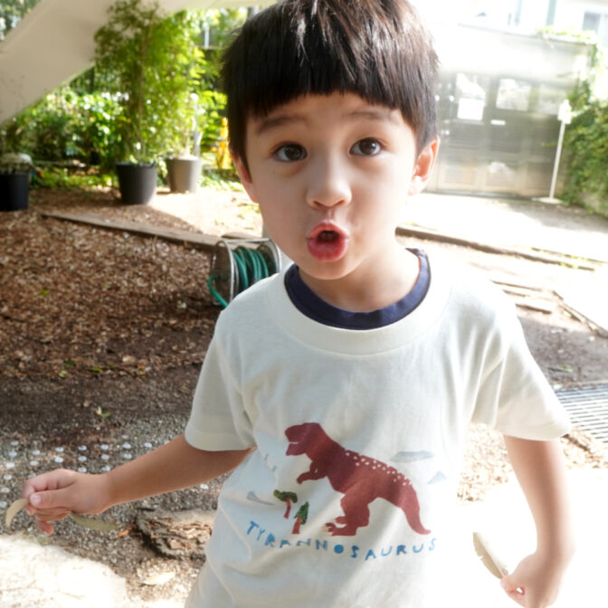 - 迫力あるティラノサウルスがgoodです。おんなじポーズをしてTシャツを着た姪っ子が写真を送ってくれました。