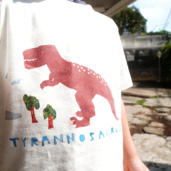 - ティラノサウルスのTシャツをネットで探していたところ、偶然見つけました。恐竜Tシャツのわりにはかわいくてカラフルで子供も喜んでくれてます。