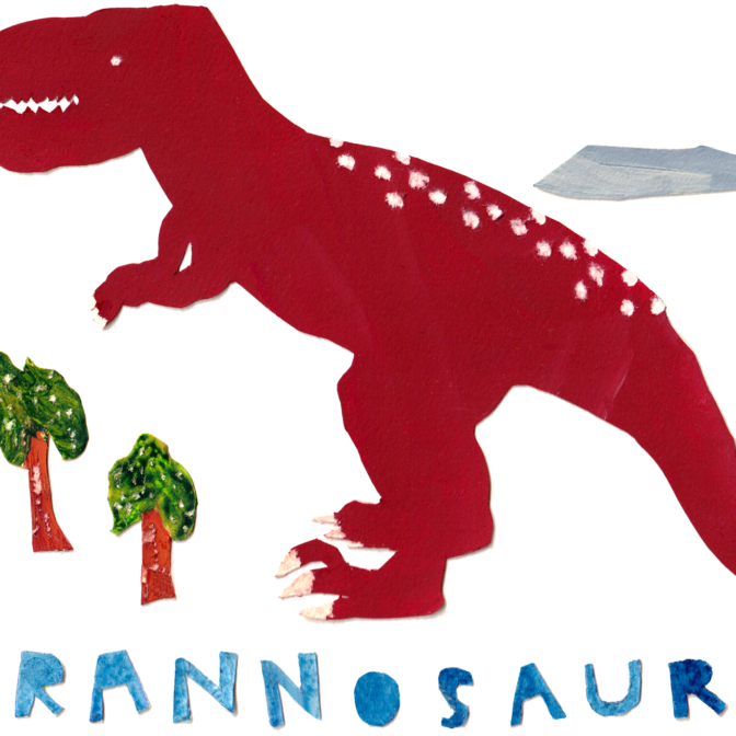 恐竜の王様ティラノサウルスを切り絵でつくったイラストをTシャツにしました。